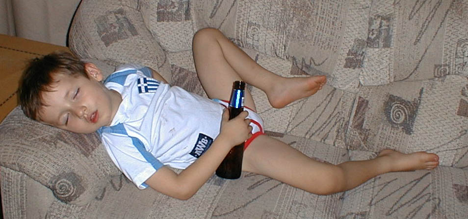 hahaha... what kinda beer is he holdin'? (looks like a picture we took of a cat once... sept for the cat had a remote 2)